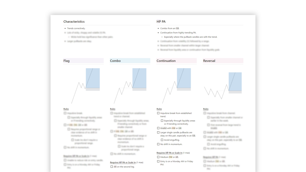 - Unique checklists for my 6 currency pairs.
